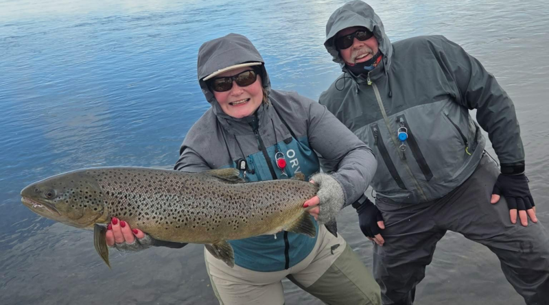 „Þetta gengur frábærlega hérna í feðgaferðinni og við fengum 25 fiska í dag, nokkra stóra og þessi á myndinni eru 87 sentimetrar, já þetta gengur vel hérna,” sagði Stefán Sigurðsson á bökkum Eyjafjarðarár er við heyrðum í honum og hann bætti við;