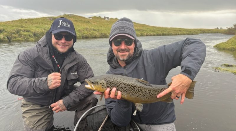 „Það er mikið af laxi hérna, er í Réttarstregnum, en hann er tregur, einn kom upp í fluguna áðan,“ sagði Þröstur Elliðason leigutaki í Hrútafjarðará, veiðitíminn er að klárast eins og víða þessa dagana. Það er flottvveður við ána þegar