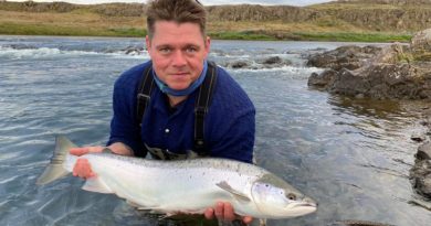 Frábær byrjun í Leirá í Leirársveit í morgunsárið, eftir hálftíma voru þrír flottir fiskar komnir á land, sem öllum var þó sleppt en fljótlega var talan kominn í 14 fiska. Fyrir nokkrum dögum var áin ísilögð, í gær var hún lituð og í dag eins og draumur veiðimanna. „Áin er bara flott í dag eftir síðustu daga, “ sagði Stefán að lokum.