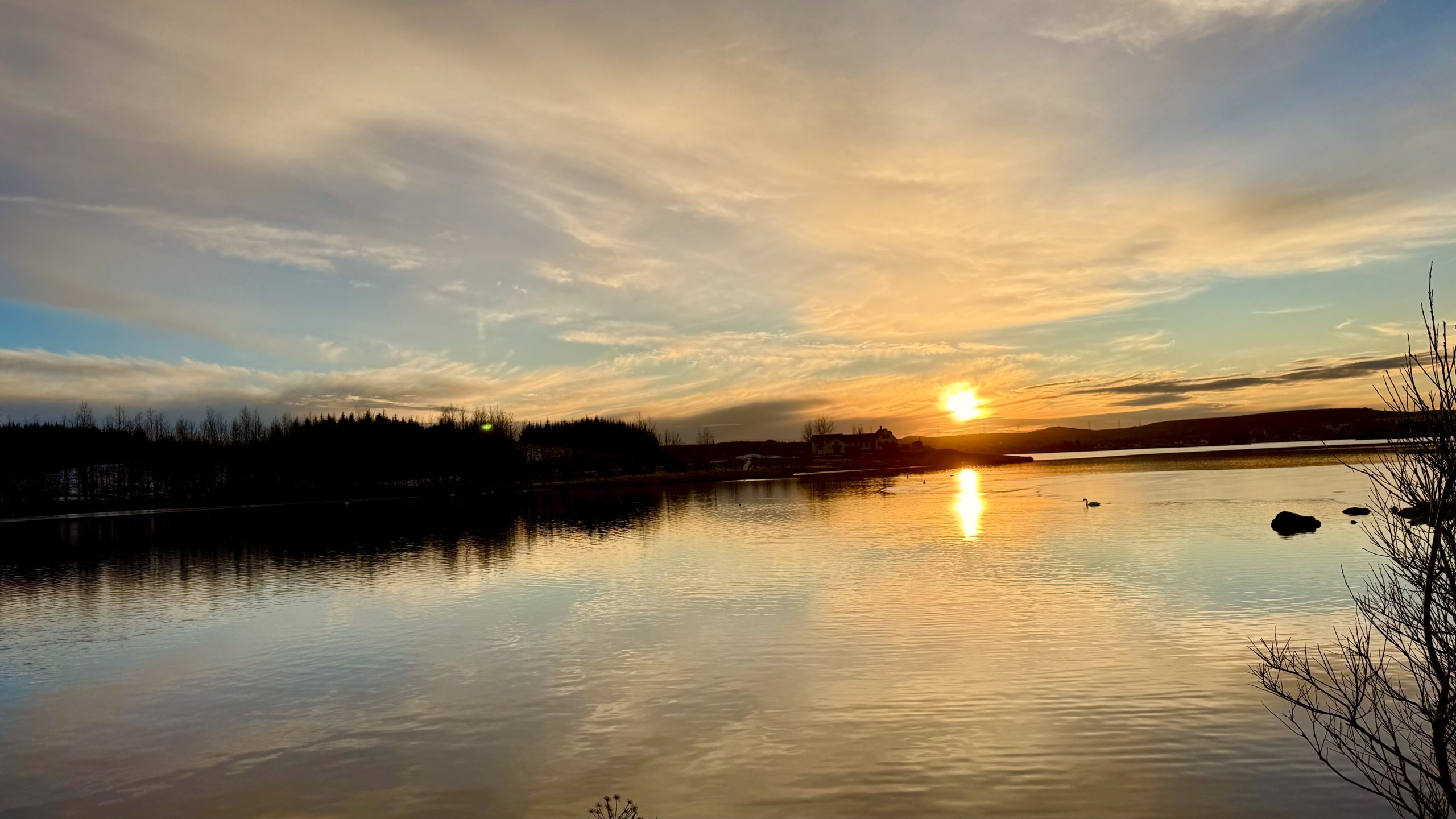 Fallegt við Elliðavatn, einn og einn fiskur að vaka