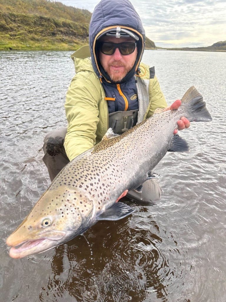 „Var með Spánverja við veiðar síðustu daga í Tungufljóti. Ekta íslenskt haustveður… rok og rigning,“ sagði Árni Friðleifsson um ferðina í Tungufljót.
