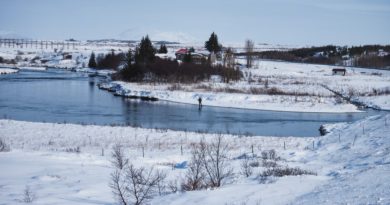 Flottur veiðikall með stöng og lækinn fyrir framan sig /Mynd: María Gunnarsdóttir