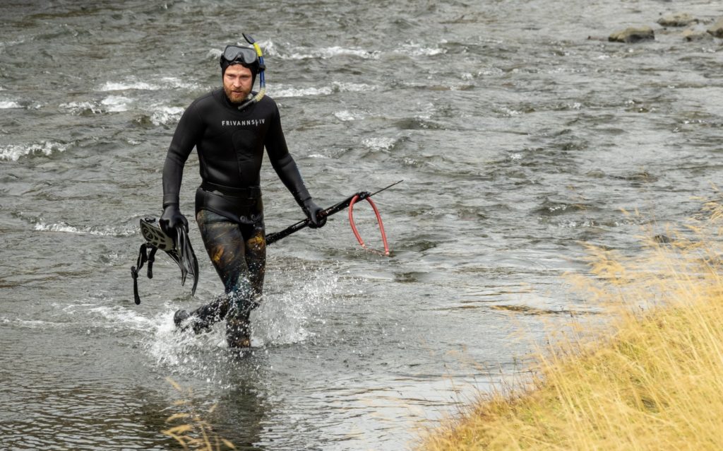 Tvö gengi af köfurum frá Noregi er mætt til landsins til að skoða aðstæður í laxveiðiánum og hafa síðustu daga þrætt ár á Skógarströnd og Fellsströnd til að kanna hvort þar sé eldislaxa að finna. „Það fannst ekki neitt í Fagradalsá,” sagði okkar maður á staðnum.