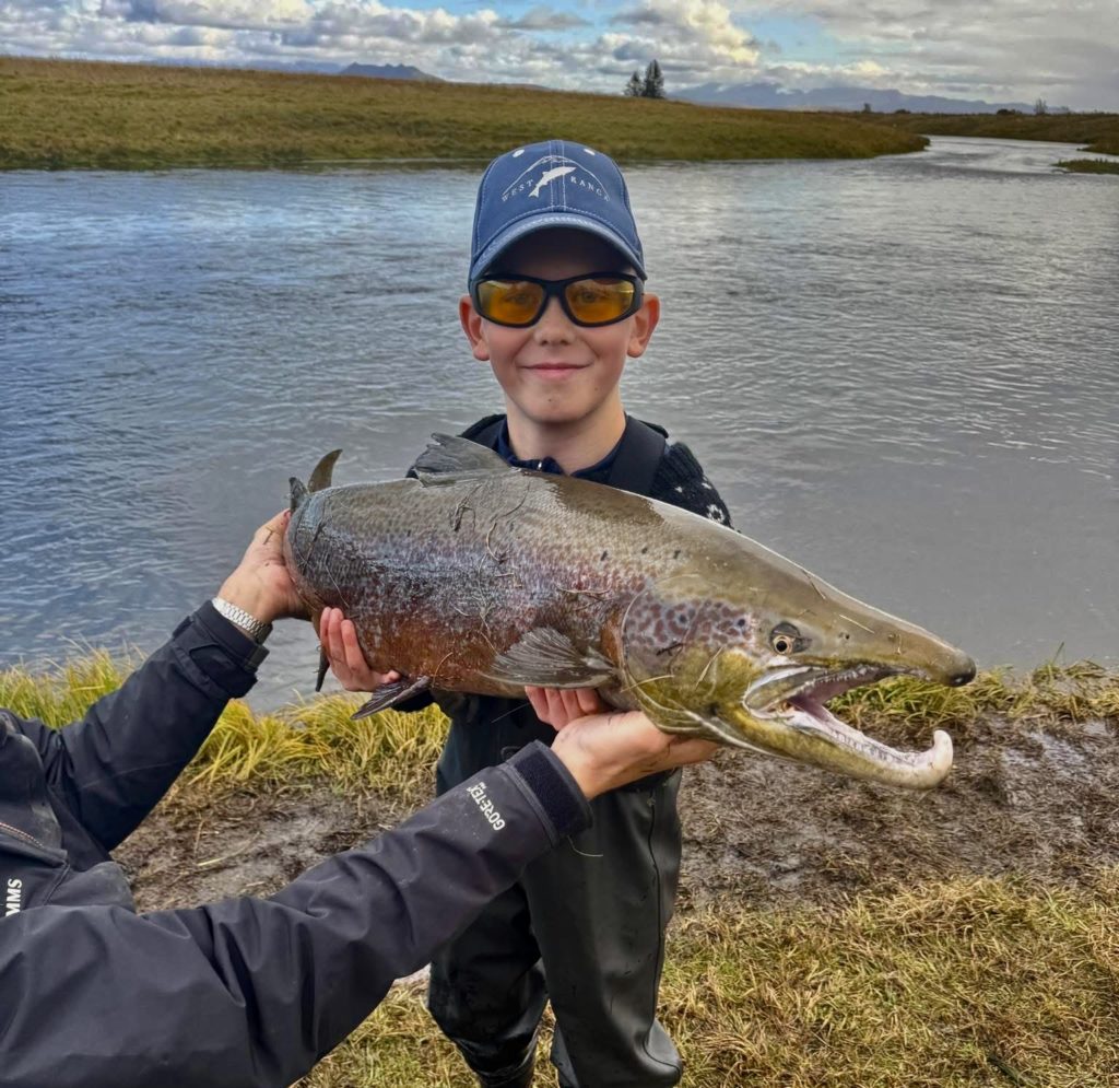 Glæsilegur 93 cm hængur sem tók rauðan Francis #14 á veiðistaðnum Doktor. Að sjálfsögðu var fagnað með pönnukökum og kræsingum, eins og hefð er fyrir.