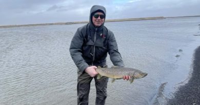 „Sonurinn spurði í hvert skipti sem við keyrðum framhjá vatni hvort að þetta væri staðurinn. Við lögðum af stað kl.10 um morguninn, vel nestaðir og allar græjur með í för til að ná okkur í fisk. Loksins þegar við komum á staðinn var byrjað að labba af stað að vatninu og þegar við komum þangað var sá stutti svo spenntur þvi hann hafi séð fisk taka flugu í yfirborðinu. Við settum saman stöngina og köstuðum út. Tveim mínútum síðar öskrar strákurinn; „pabbi það er fiskur!“ Hann dró fiskinn að landi en datt af við löndun. Strákurinn var alls ekki hættur og bað pabba um að beita. Aftur var kastaði út og leið ekki að löngu áður en flotið fór á bólakaf. „Annar fiskur!“ öskar hann og í þetta skipti heppnaðist löndunin. Við enduðum daginn með 6 fiska og misstum heilan helling en minn maður og pabbinn voru rosalega sáttir með daginn. Bíðum spenntir eftir næstu feðgaferðm,“ sagði Ingi Rafn að lokum.